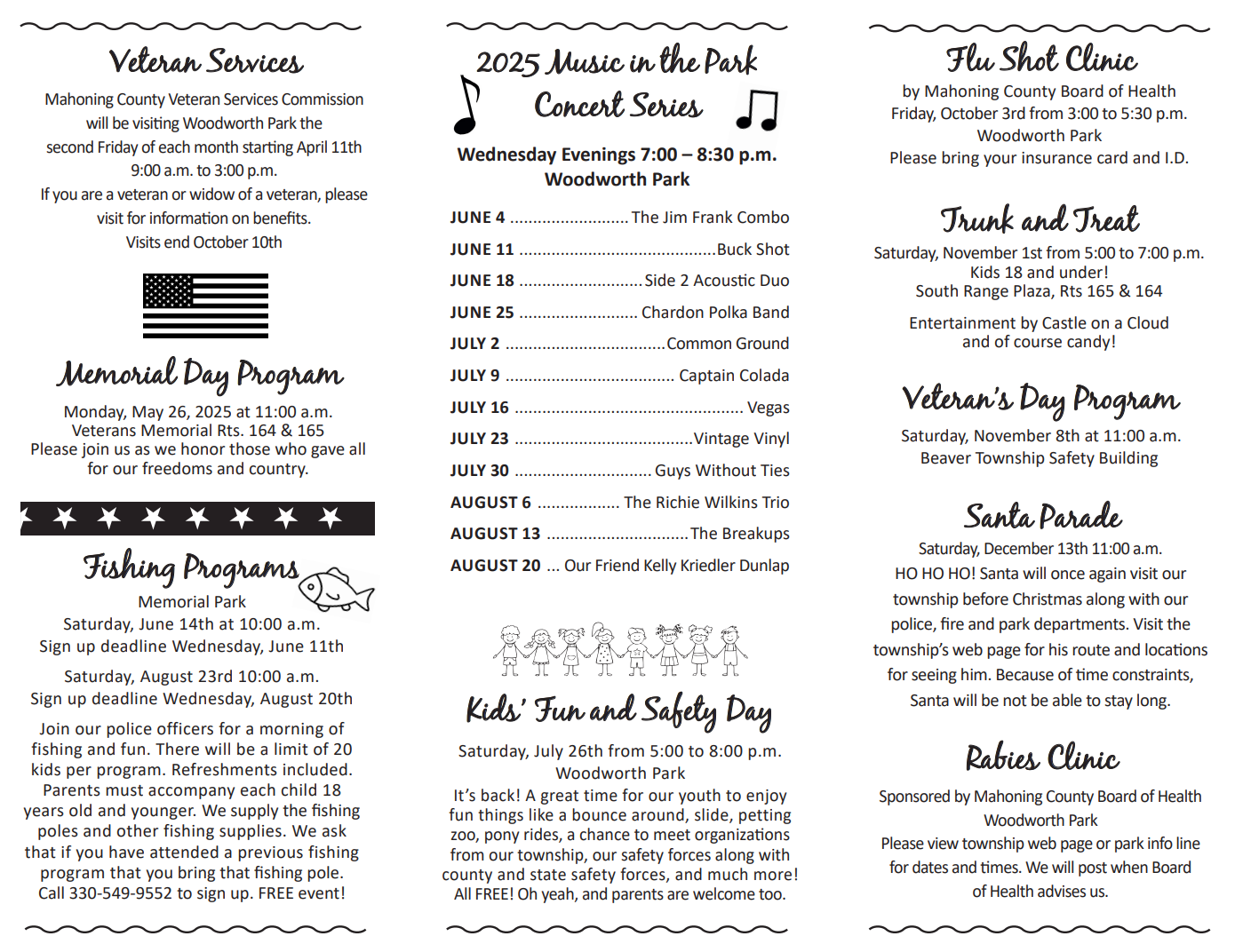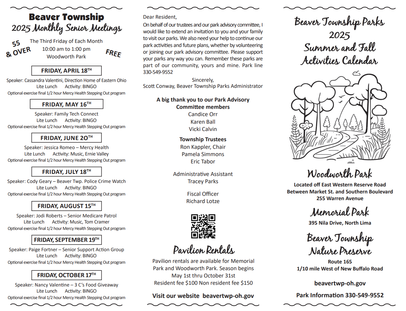 Beaver Township Parks Department is lead by our Park Administrator, Scott Conway. We have a senior program each month (April- October), and many events held at the parks. Check the calendar for all the events and location for these great programs!!
